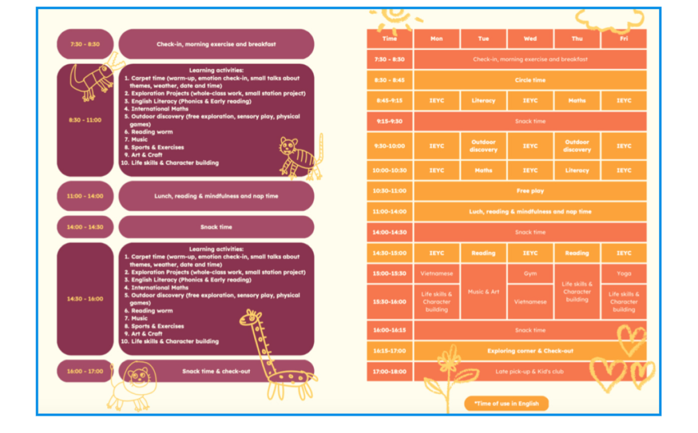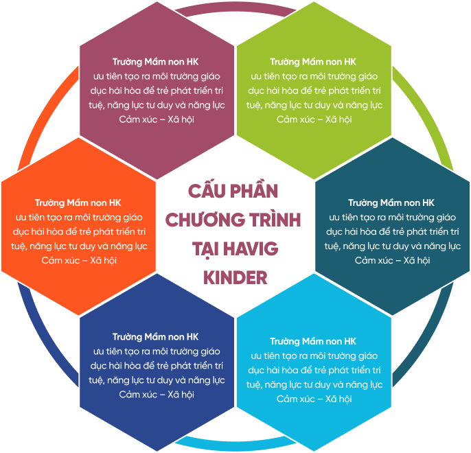 Chương trình giáo dục của Havig Kinder được chắt lọc từ những tinh hoa của nền giáo dục Anh Quốc và Việt Nam. Với chương trình mầm non quốc tế IEYC ( International Early Years CurriAulum) bản quyền Anh Quốc kết hợp Chương trình của bộ GD & ĐT Việt Nam giúp trẻ phát triển toàn diện
